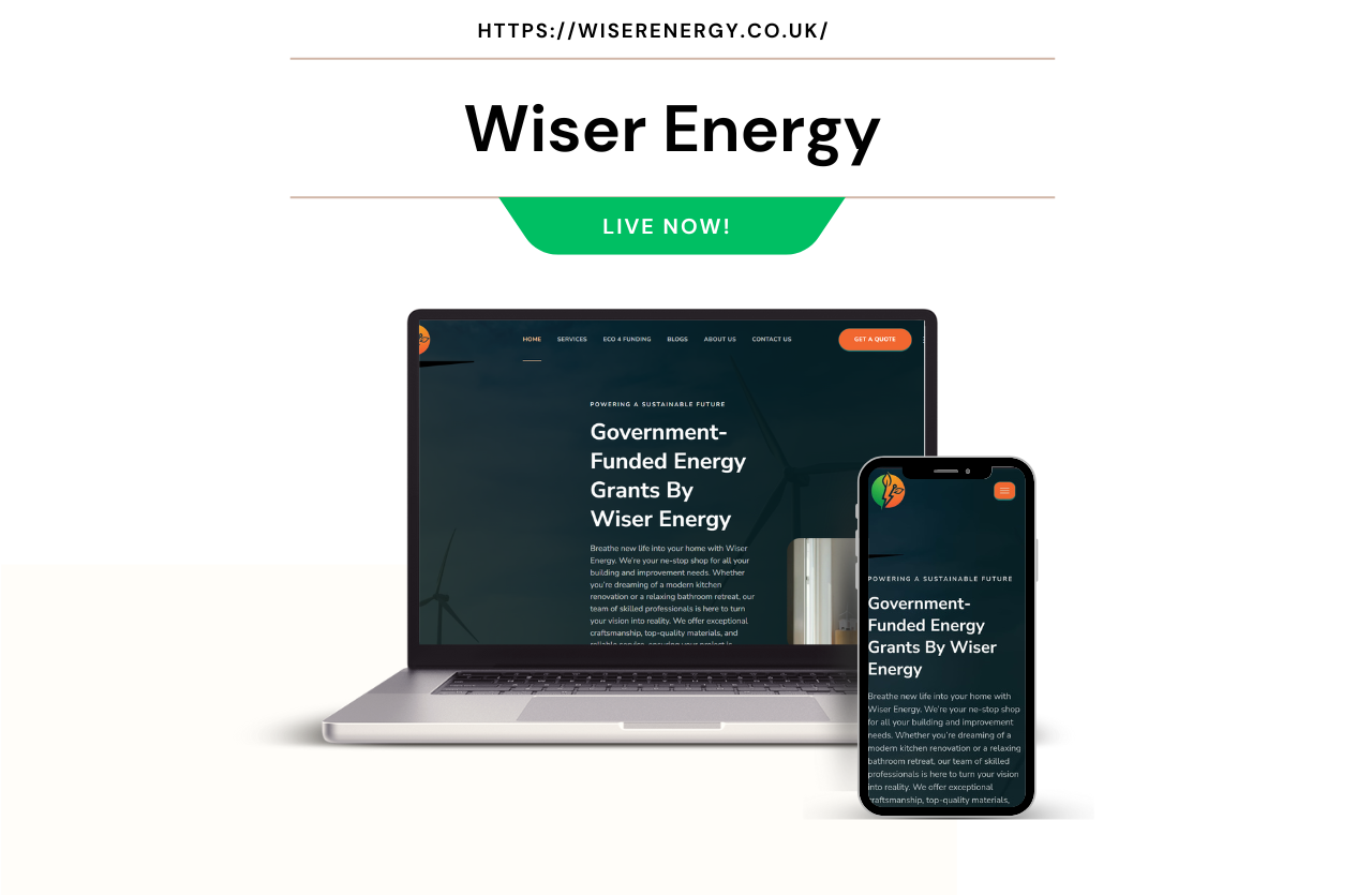 We designed and developed a brand-new website tailored to Wiser Energy’s needs. The site provided detailed information on their services, including boiler upgrades, insulation, and solar panel installations. We also streamlined the application process for government grants, making it easy for users to get started.